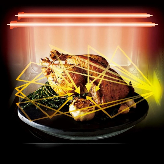 Với chức năng nấu kép của NN-GT35NBYUE gồm chức năng vi sóng làm chín thức ăn nhanh chóng ở bên trong, trong khi chức năng nướng giúp thức ăn vàng và giòn bên ngoài. Cả hai chức năng sẽ kết hợp và luân phiên theo trình tự để mang đến cho cả gia đình những món thơm ngon.