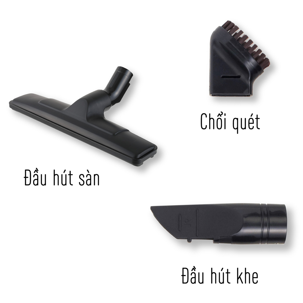 - 3 đầu hút thay đổi tiện lợi (hút sàn, hút khe và chổi quét)