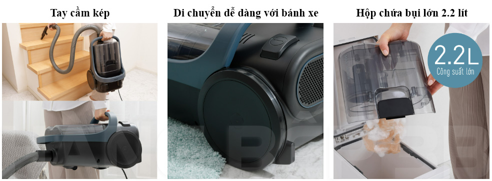 Bộ lọc và hộp chứa bụi có thể rửa hoàn toàn giúp đảm bảo mọi thứ luôn sạch sẽ và vệ sinh.