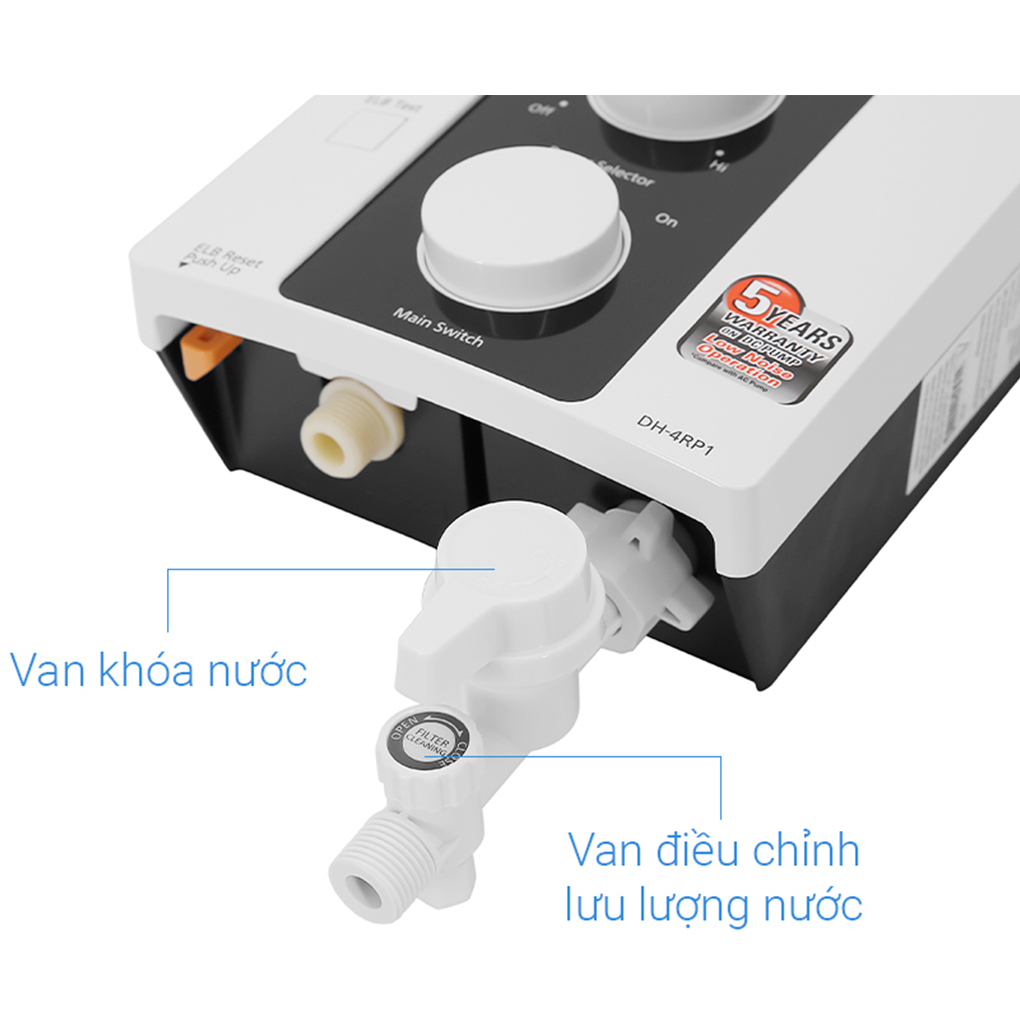 - Hoạt động êm, không gây ồn ngay cả khi nước yếu nhờ có bơm trợ lực