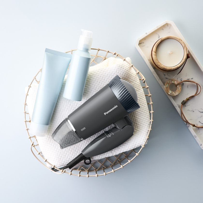 Máy sấy tóc Panasonic màu đen xám trung tính thanh lịch, lạ mắt, kết cấu chắc chắn, sử dụng bền lâu, đáp ứng nhu cầu sử dụng của cá nhân, gia đình, tiệm làm tóc.