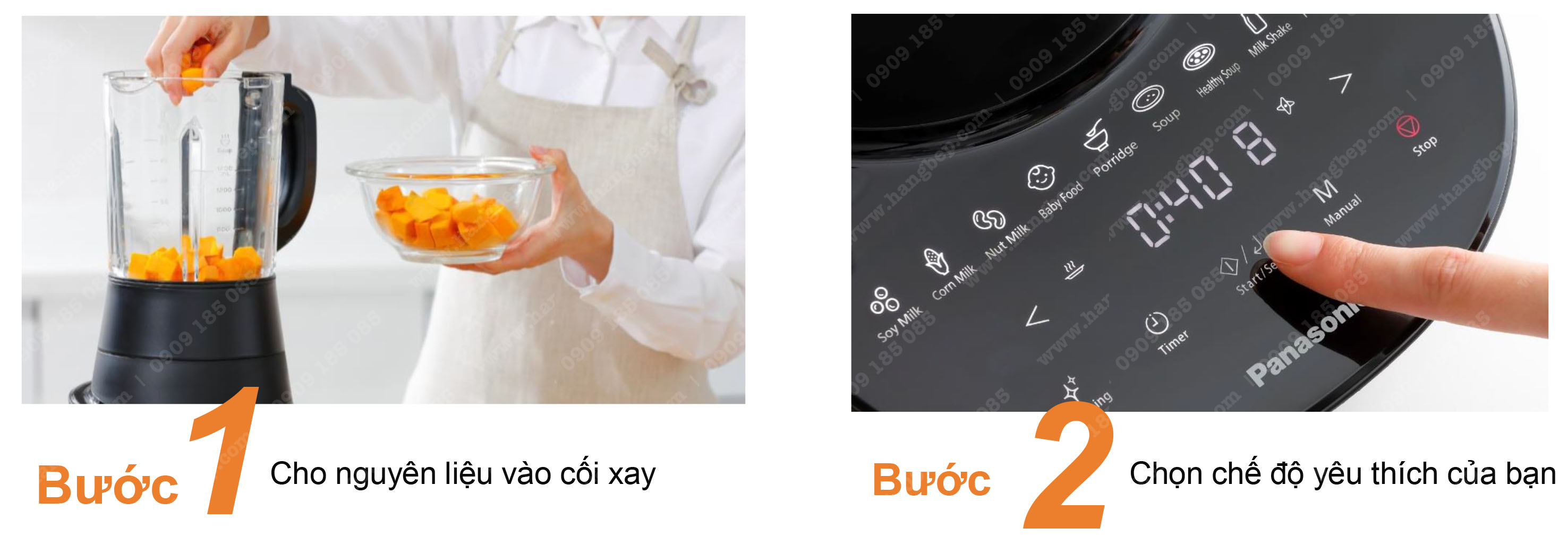 Bạn chỉ cần cho nguyên liệu vào cối và chọn chế độ xay-nấu. Phần còn lại thì Panasonic MX-HG6401KRA sẽ hoàn thành chu trình chỉ trong 20 phút.