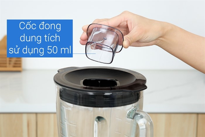 - Nắp nhỏ tiện lợi: Máy được trang bị nắp phụ cho phép thêm nguyên liệu trong khi xay mà không cần dừng máy, giúp bạn linh hoạt điều chỉnh công thức theo sở thích.