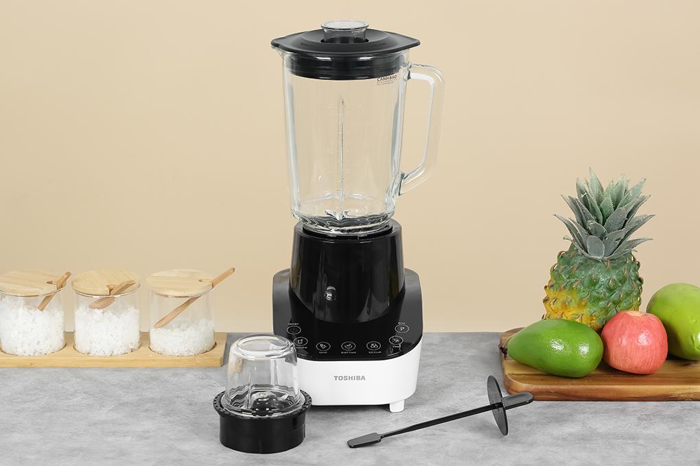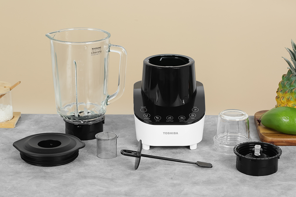 - Máy xay sinh tố Toshiba có 1 tốc độ xay và 1 nút nhồi tiện trộn nguyên liệu, chống tắc nghẽn, xay nhuyễn đều.