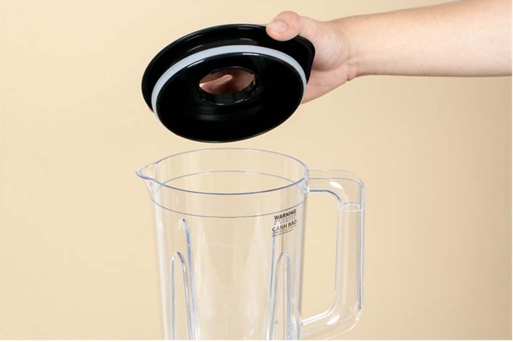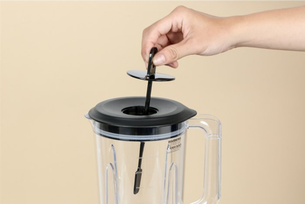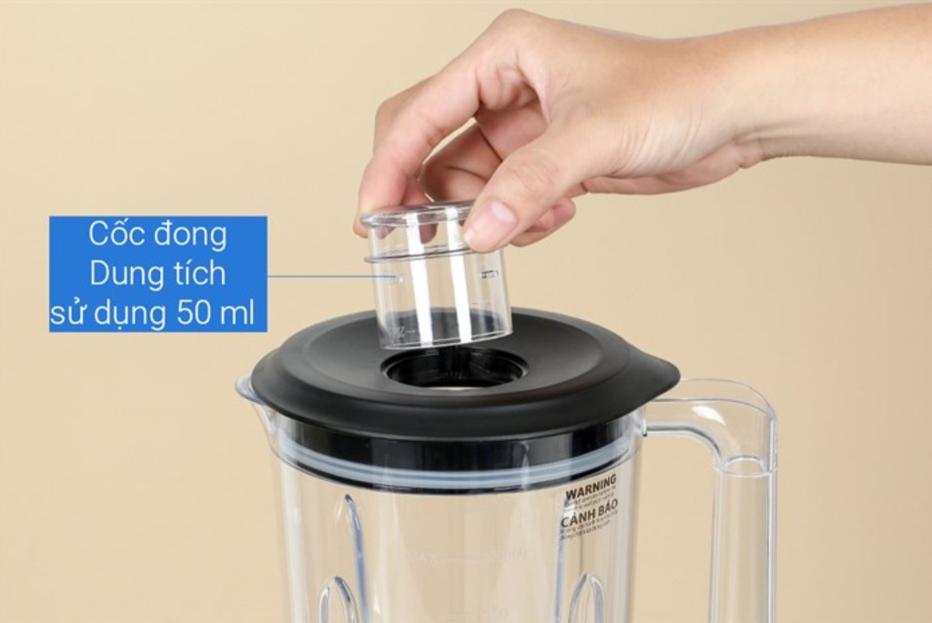 Nắp nhỏ tiện lợi để tiếp nguyên liệu khi xay, có thể dùng như cốc đong dung tích 50 ml.