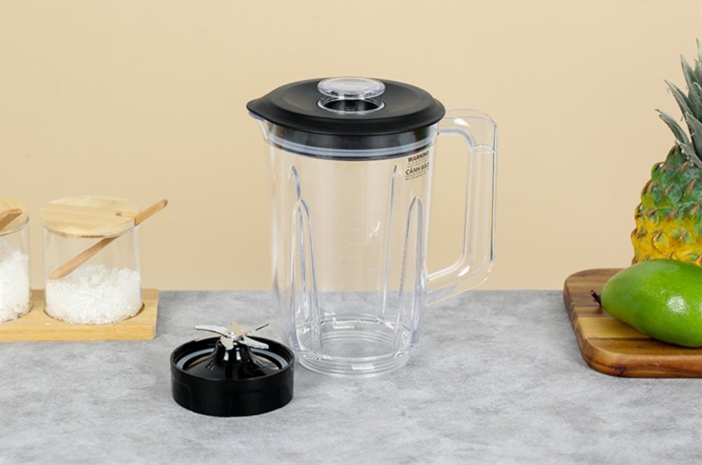 Cối lớn: Nhựa Tritan không chứa BPA, dung tích 1.5 lít, phù hợp xay sinh tố, thức ăn cho bé, và xay đá nhỏ.