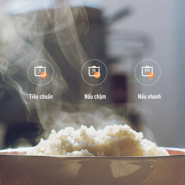Chọn chế độ nấu "Tiêu chuẩn" sẽ đem lại chất lượng cơm chín đều. Chế độ "Nấu chậm" giúp cơm ngon dẻo. Chế độ "Nấu nhanh" cho phép bạn nấu cơm nhanh gọn trong vòng 30 phút. Ngoài ra khả năng kiểm soát nhiệt độ chính xác sẽ giúp cho cơm ngon mềm hơn.