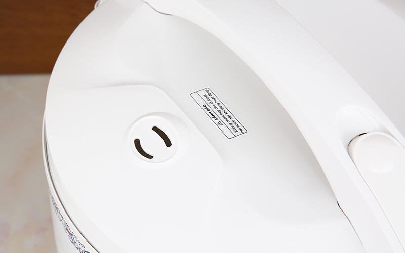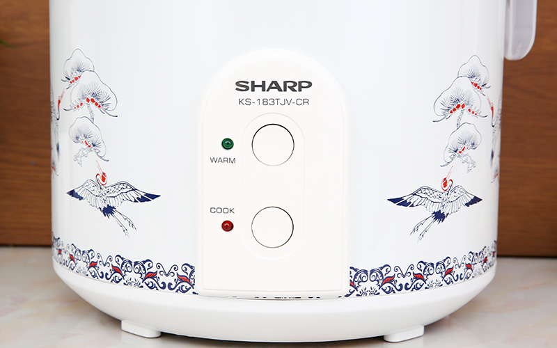 Nồi cơm điện KS-183TJV-CR có thiết kế đơn giản, màu sắc nhã nhặn với nền trắng có hoa văn con hạc, góp phần tô điểm gian bếp thêm sang trọng, bắt mắt.