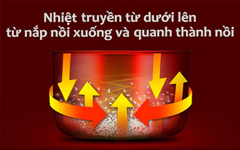 Công nghệ nấu 3D giúp cho lượng nhiệt tỏa đều từ mọi phía cho hạt cơm tơi xốp, cơm chín đều, thơm ngon hơn, không lo khô hay nhão khi nấu.