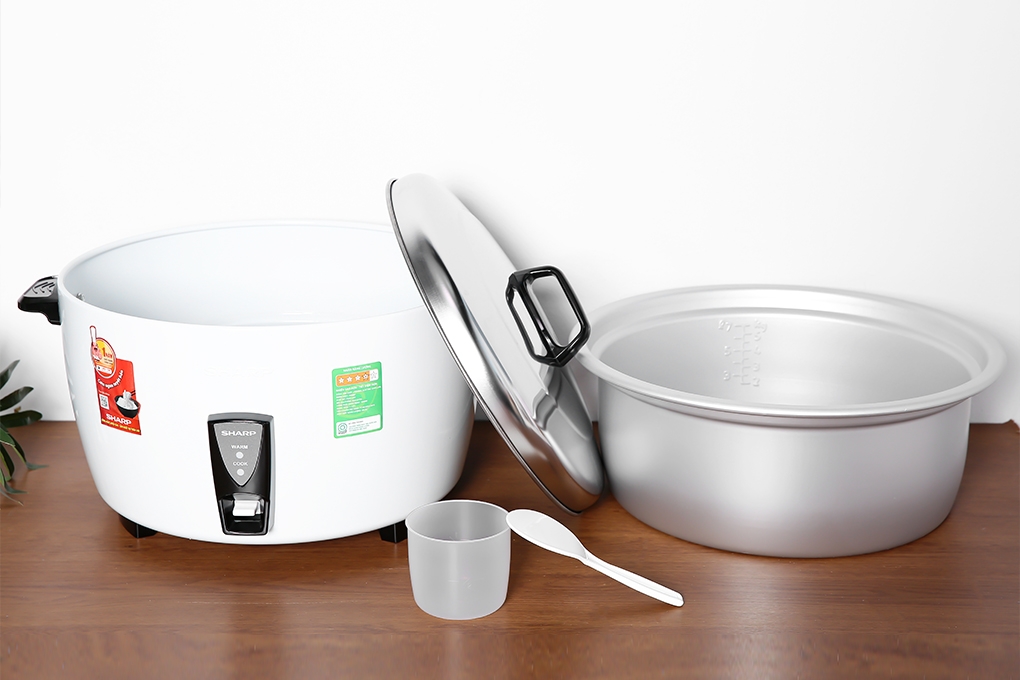 - Nồi cơm điện Sharp có màu trắng trang nhã, nắp rời tiện lợi, có tay cầm để dễ di chuyển nồi.